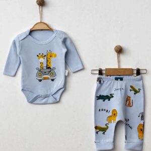 ENSEMBLE GIRAFE BLEU CIEL 3-6-9 MOIS