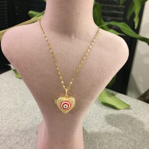 Collier en cœur doréé avec mauvais œil