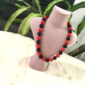 Collier avec perles rouge noir